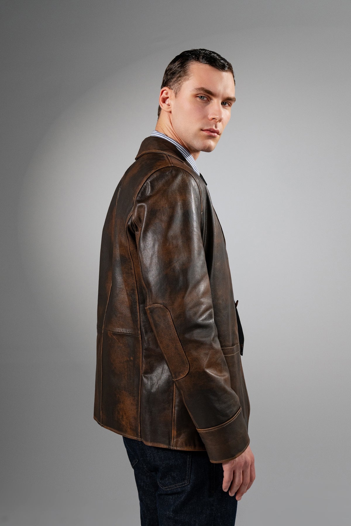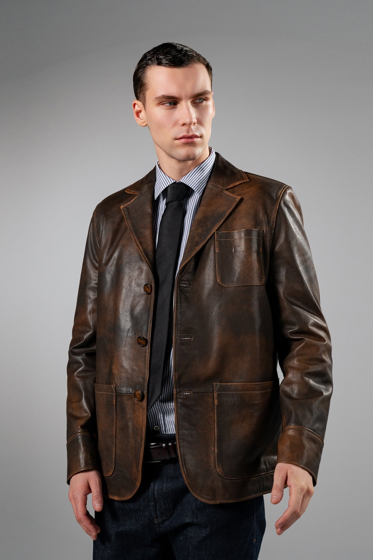 Valmenti Erkek Hakiki Deri Viski Eskitme Deri Mont VLM3354